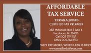 Tax preparation Service for individual and small business and offering electronic filing. Affordable Tax Service LLC was established in 1990. To be eligible tax preparers must complete the AFSP.